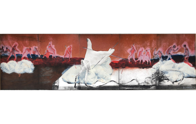 untitled 1993. maquette. gravure with paint and shellac 250cm x 68cm